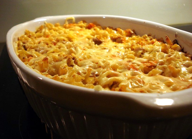 Valmistin tonnikalapastavuokaa kun kuopus pistäytyi eräänä päivänä syömään.